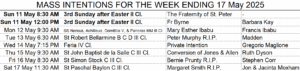 FSSP Chaplaincy Bulletin, 11-24 May 2025 Served by the Priestly Fraternity of St Peter by appointment from the RC Diocese of Northampton Residence: St Alban House, 18 Brett Drive, Bromham, Bedford MK43 8RF Landline: 01234 954 316 Worship across three churches: Sunday 8:30am: All Saints, Church End, Kempston, Bedford MK43 8RH Sunday 12noon: Our Lady of Perpetual Succour, Chesham Bois, 30 Amersham Road, HP6 5PE Weekdays: Our Lady of Ransom, 307 Bedford Rd, Kempston, Bedford MK42 8QB: Mon 9:30am […]