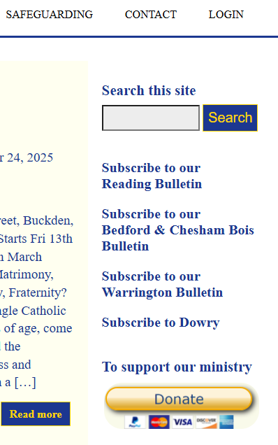 Safeguarding: If you have concerns about children or vulnerable adults, please contact the FSSP Northampton Safeguarding officer William Currie: Tel: 07825 089 336. Email: safeguardingfssp@pm.me. Reminder: NO child must be left unsupervised at any time.