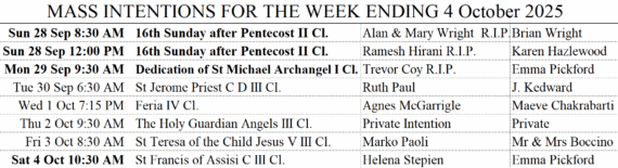 Major feast of St Michael the Archangel this Monday: 9:30am holy Mass.