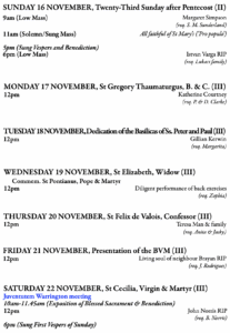 On Monday 8 September 2025, the Feast of the Nativity of Our Lady, our Shrine community will be placed under her protection by means of a consecration after the 7 am and 12 noon Masses. You can find the consecration prayer here: O Blessed Virgin Mary, Mother of God and Help of Christians, behold this day before thy feet, the priests and lay faithful of St Mary’s Shrine, Warrington, together with all those who, united with us via LiveMass, place […]